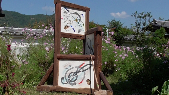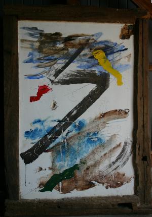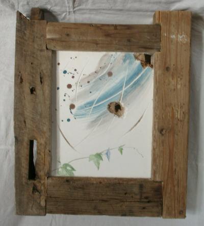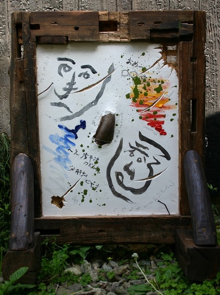 作品タイトル title rakugaki 1, rakugaki 2 (個人所有) サイズ size thumbhole X 2 素材 medium 古木材 土壁(竹、稲わら、縄、土、漆喰) 墨 油絵の具 鉛筆 decayed wood bamboo, rice straw, mud, lime, china black ink [Sumi], oil color, pencil