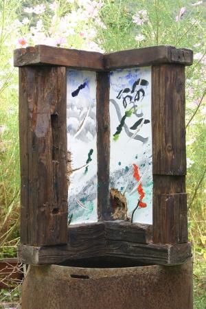 作品タイトル title graffiti サイズ size 50 X 50 X 50 cm 素材 medium 古民家廃木材 土壁(竹、稲わら、縄、土、漆喰) 岩絵の具 墨 油絵具 透明水彩絵の具 アクリル絵の具 鉛筆 salvaged wood from an old farm house, bamboo, rice straw, mud, lime, Japanese rock color[Iwa-enogu], china black ink [Sumi], oil paint, water color, acryl, pencil |