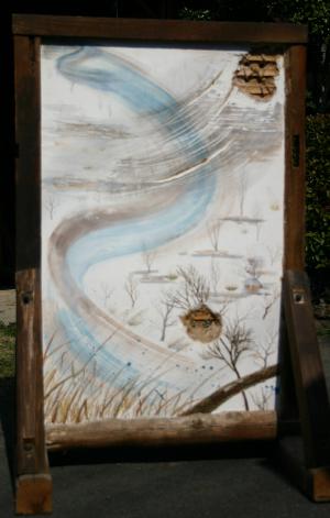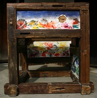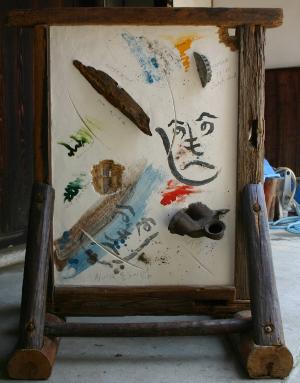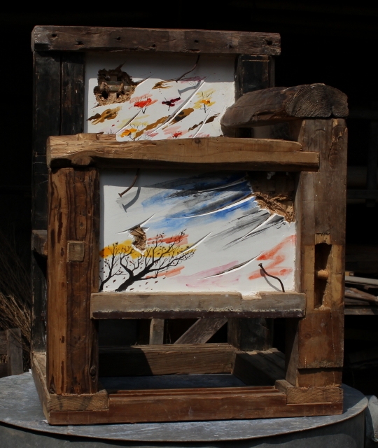 2015年4月作品 作品タイトル title Seasons In Japan サイズ size 70 X 50 X 50 cm素材 medium 廃木材 土壁(竹、稲わら、縄、土、漆喰) 岩絵の具 墨 油彩 salvaged wood , bamboo, rice straw, mud, lime, Japanese rock color[Iwa-enogu], china black ink [Sumi], and oil