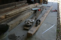 2 材から古釘等を除く。材を吟味し、部材をどう切り取るか検討する。![]() |