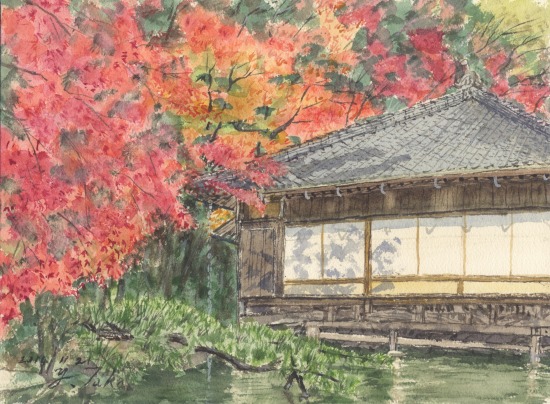 龍野公園 聚遠亭 龍野公園 聚遠亭です。本日、良天気に誘われてスケッチしてきました。紙はarches cold pressed 300g.23x31cm. Berkeley Cal.でかなり昔に買った紙ブロックです。たいした金額ではなかった記憶がありますが、日本では相当高価な紙です。なれない紙で苦戦しました。 モミジはちょうど見ごろで、見物客もかなりの人出でした。 いつも通りにスーパーカブは好調です。片道20kmほど、朝は冷えましたが。 By artytaka | 2014-11-21 | アート art | No Comments | ← frost 庭の紅葉 → コメントを残す コメントをキャンセル コメントを投稿するにはログインしてください。