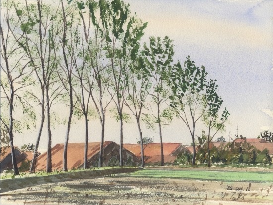 シュナイダー家での2泊目の朝、昨日同様に近所でスケッチをした。畑の中でのスケッチ。