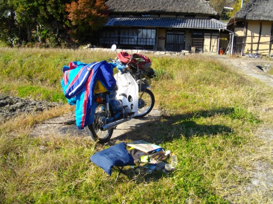 朝は霜が来ましたが小春日和の今日、備前八塔寺へスーパ-カブでスケッチ行でした。ここのモミジはまだちょっと早かったのですが、赤を盛り込んでおきました。手前のカエデの樹は、去年には藤蔓が絡んで可哀そうな姿でしたが今年はきれいに整備されて藤は絡んでいません。しかし樹勢は弱っているようで梢の多くは色付くことなく黒褐色化しています。十年ほど前までは見事な紅葉を見せていたのですが、、、。カミキリムシ幼虫に幹を食い荒らされているかもしれません。