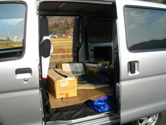 片側のスライドドアを開放して車内からのスケッチですが、上着を脱ぎ棄てるほどの暖かさで快適なスケッチとなりました。
