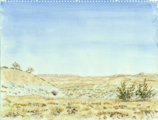 アルゼンチンを離れてチリ側を北上すれば乾燥原野を走ることはもう無いだろう。ひどく早い時間からキャンプに入り、最後の乾燥原野 をスケッチする。