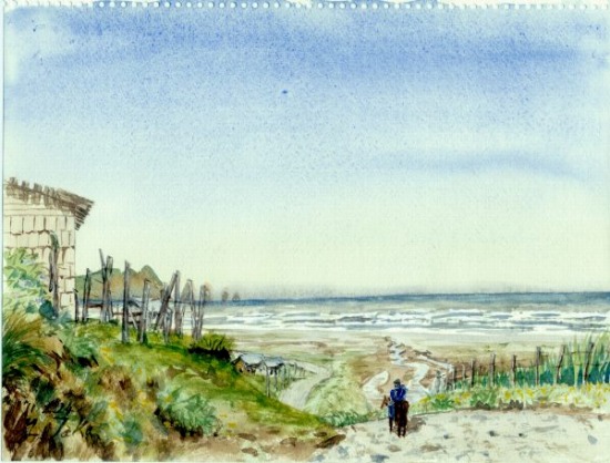 2011年1月から3月にかけての自転車旅からのスケッチ、全点23作品を展示しました。すべて透明水彩絵の具を用い、現場で完成させた現場スケッチです。