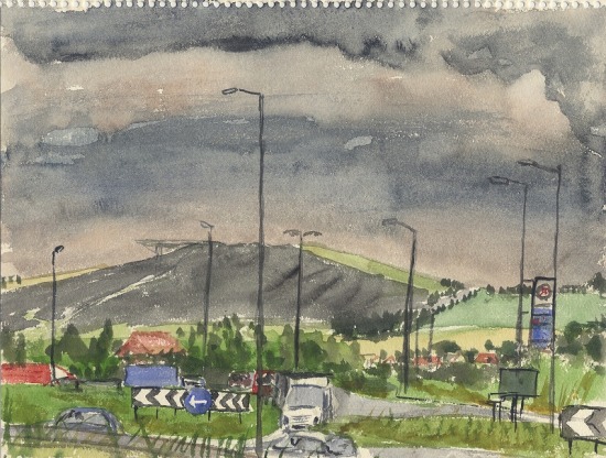 Doncasterあたりだろうか? A1を北上しているのだが、昼休みがてらスケッチする。