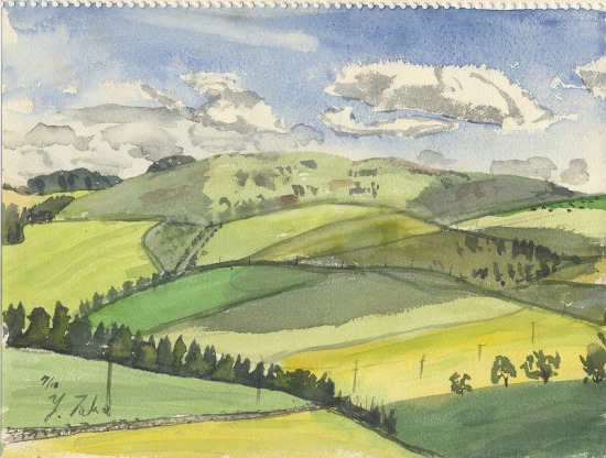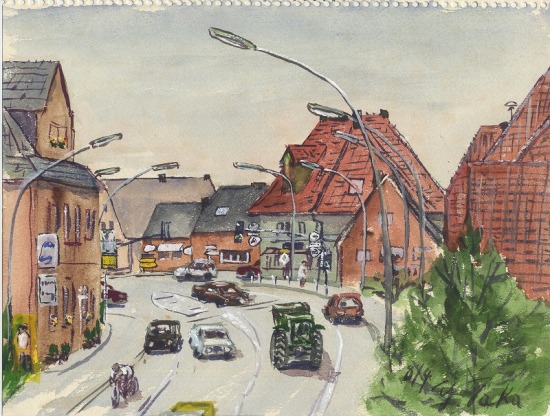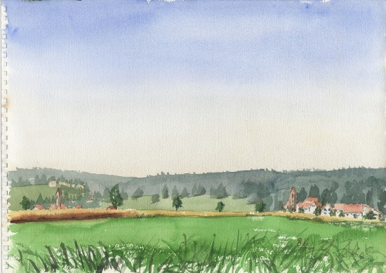 シュナイダー家での2泊目の朝、昨日同様に近所でスケッチをした。畑の中でのスケッチ。