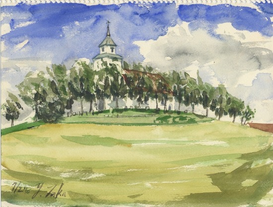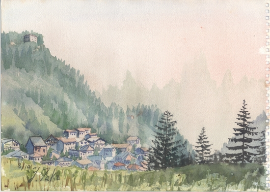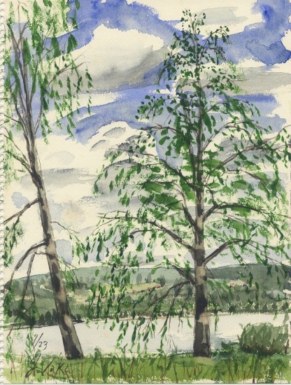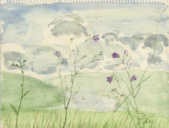 夕方、宿の近くでスケッチをした。なにぶん北国の夏の日暮れは遅い。10時を過ぎまで明るいのだから。