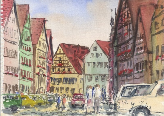 めったにしないのだが、車などは鉛筆で素描して着彩している。車の車種を判明させたかったのだろう。真ん中の車は、この前前年にアバディーンで乗る機会があった車と同一車種に見える。
