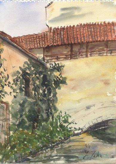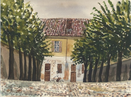 ミラノ近郊の小さな町、ロベッコに友人宅を訪ねた。ユーゴスラビアの海岸で知り合った家族のSchneider家だ。お邪魔した1泊めの朝、おいしく朝食をいただいた後で親父さんと散歩に出た。ついでに近所でスケッチ1点。