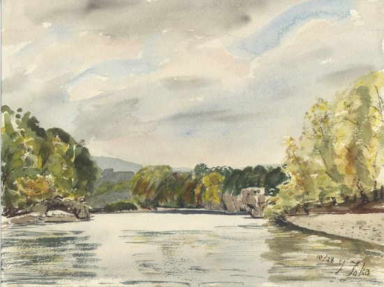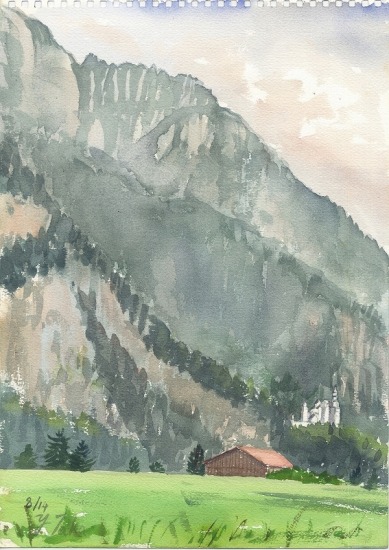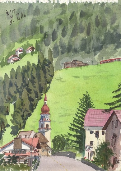 この地では珍しいと思われる良い天気に一日恵まれ、2点のスケッチができたのみならず、実に気持ちよい夕暮れ時も楽しむことができたのだった。