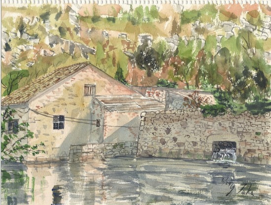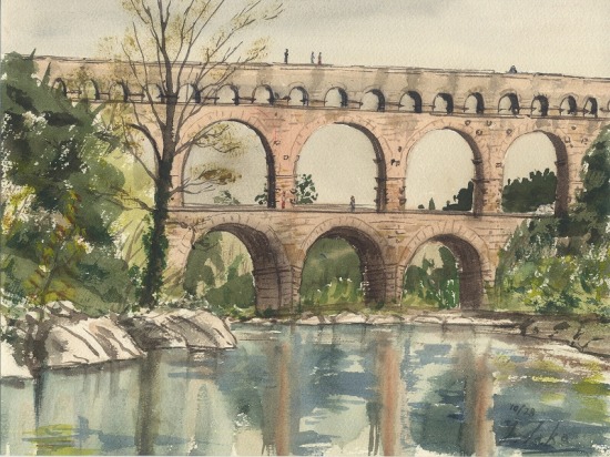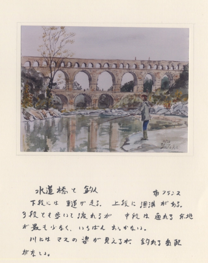 s-自転車旅スケッチ1988ヨーロッパ編 水道橋002121 Pon du Gard 釣り人 Ⅷ-7 10月28日 France 320x240  個人所有