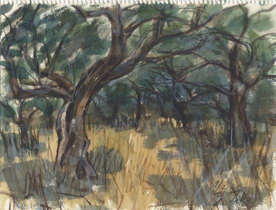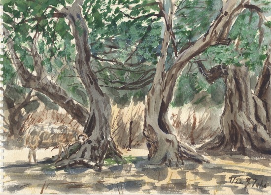 ほぼ同地点で2点めのスケッチ。夕方近くなるとすさまじい蚊柱が立つ。そうなるともう防虫スプレーは効かない。大急ぎでスケッチを仕上げた。