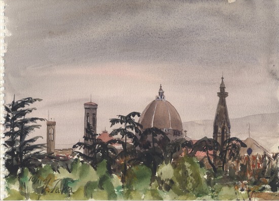 フィレンツェではキャンプ場に泊まった。キャンプ場で朝にスケッチした。この後、観光と美術館回りにいそがしい一日となった。