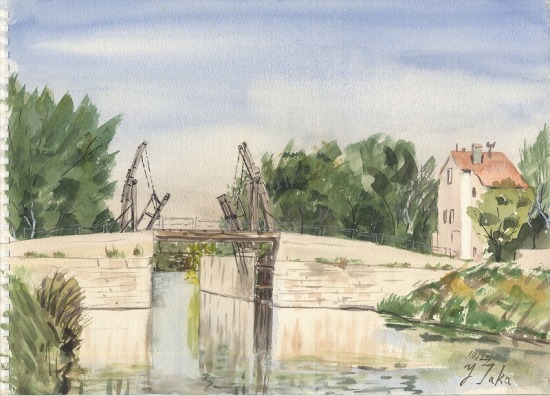 自転車旅スケッチ ヨーロッパ編 ゴッホの跳ね橋 ゴッホの跳ね橋 その1 Arles  Ⅶ-8  10月24日 France 350x253 個人所有113 ゴッホの跳ね橋 その1 Arles  Ⅶ-8  10月24日 France 350x253 個人所有