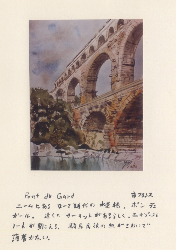 カマルグのユースホステルを出てニームを経て、12時過ぎにローマの水道橋へ着いた。昼飯を食ってしばらく後、水道橋下手から見上げてスケッチを始めた。終わってからキャンプ場を目指した。