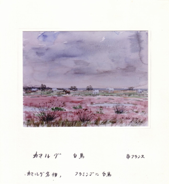 自転車旅スケッチ ヨーロッパ編 カマルグ白馬 Camarugue 白馬  Ⅷ-4  10月25日 France 320x240 cold press 個人所有118 Camarugue 白馬  Ⅷ-4  10月25日 France 320x240  個人所有