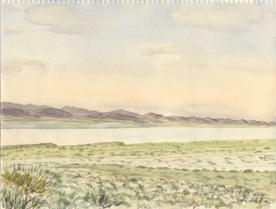 これも日付まちがい。 スケッチ後、さらに登って峠を越し、一気に下ってMono Lakeに至った。