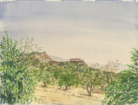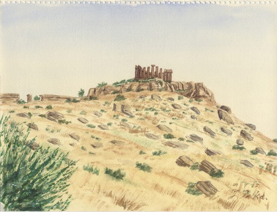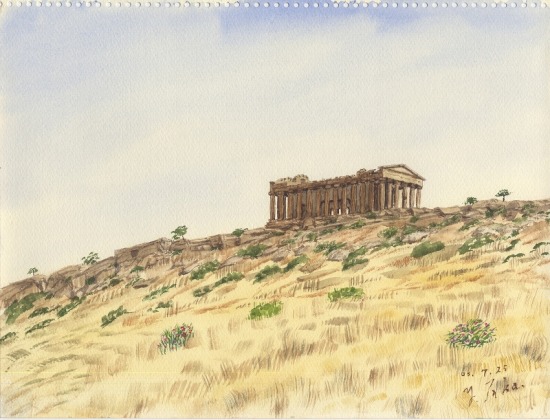 コンコルディア神殿スケッチを終えて、そのまま、ジュノー神殿のスケッチを始めた。飲み食いしながらのスケッチ。昼前に、2点目のこのスケッチも終えた。