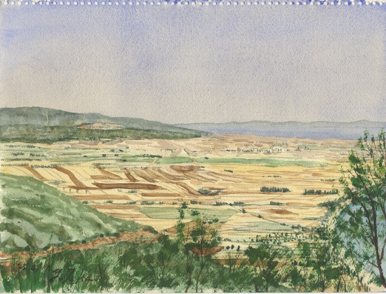 始めてトルコに来たときには、この向かいの岡すそから、この平地を逆方向からスケッチしたのだった。