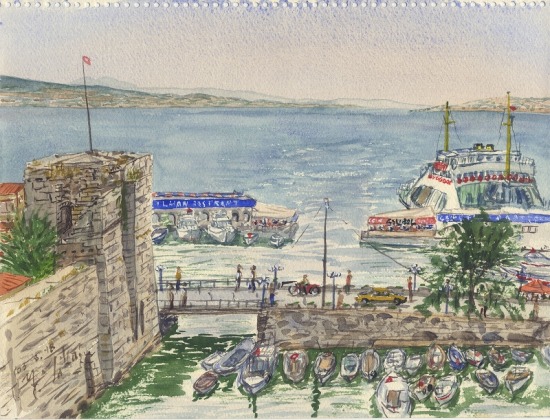 フェリーに乗って、アジア側からヨーロッパ側へとダーダネル海峡を渡った。そこ、キリトバヒールには海峡を守る要塞がある。そこでスケッチをした。